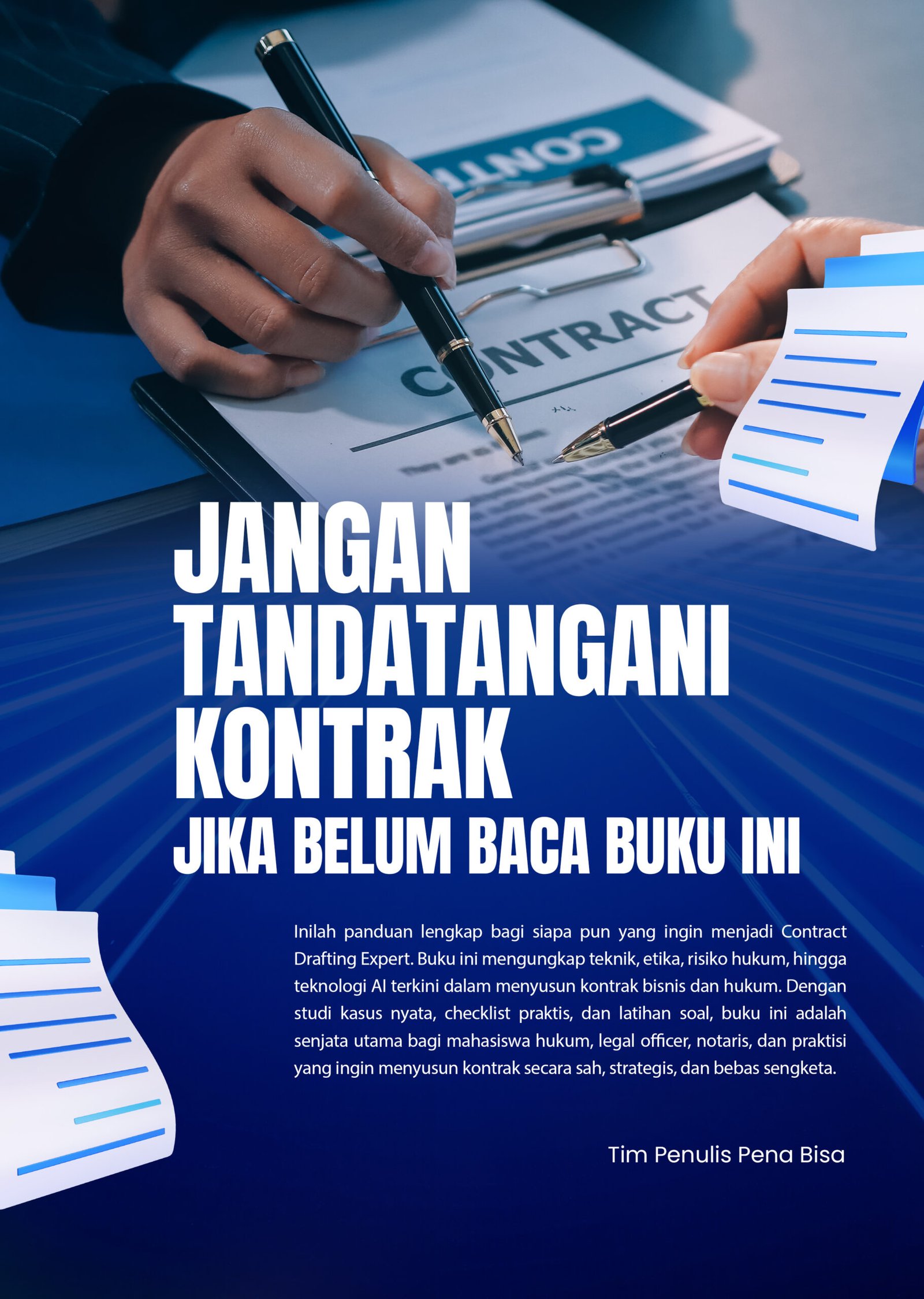 Buku Contract Drafting Expert dirancang khusus bagi para praktisi hukum, legal staff, dan profesional bisnis yang ingin menguasai seni menyusun kontrak secara efektif dan profesional. Dalam dunia bisnis modern, kontrak bukan hanya dokumen formalitas — tetapi juga alat mitigasi risiko, perlindungan hak, dan penguat kerja sama.